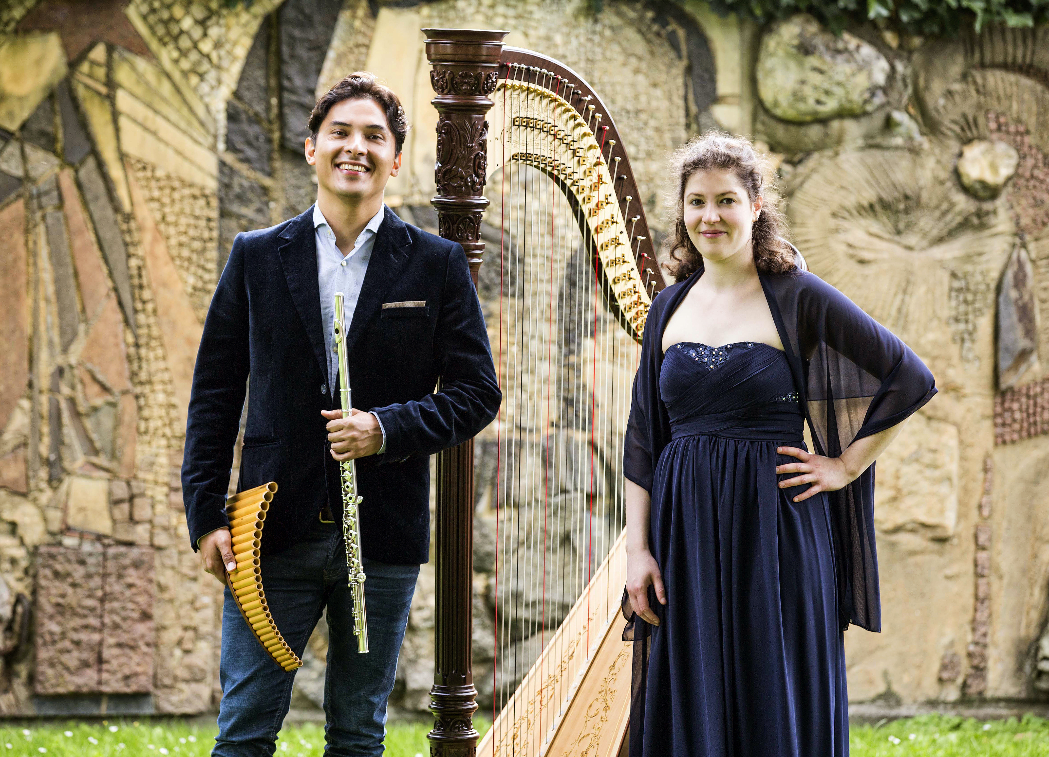 Lassen Sie sich ein auf ein Konzert mit französischer Musik für Querflöte & Harfe und wunderschönen traditionellen Stücken aus Irland mit Panflöte & Harfe.
